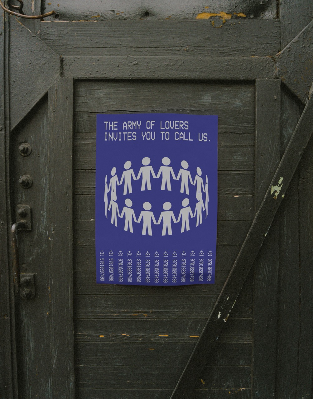 There’s also a phone number displayed on the poster. I programmed it so that anyone who calls receives a text message with the collective’s core values and can listen to the manifesto through an audio message.